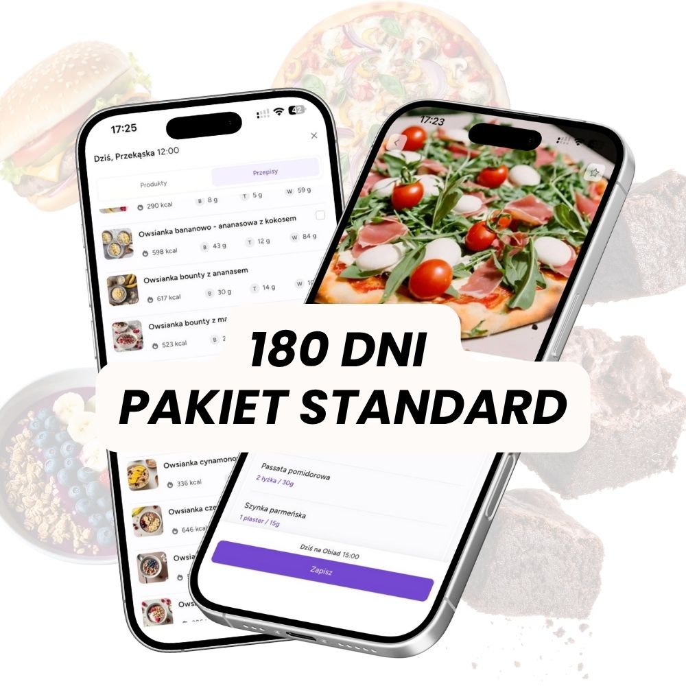 180 dni pełnego dostępu do aplikacji DP: ponad 8 000 przepisów, lista zakupów, chat i raporty postępów.